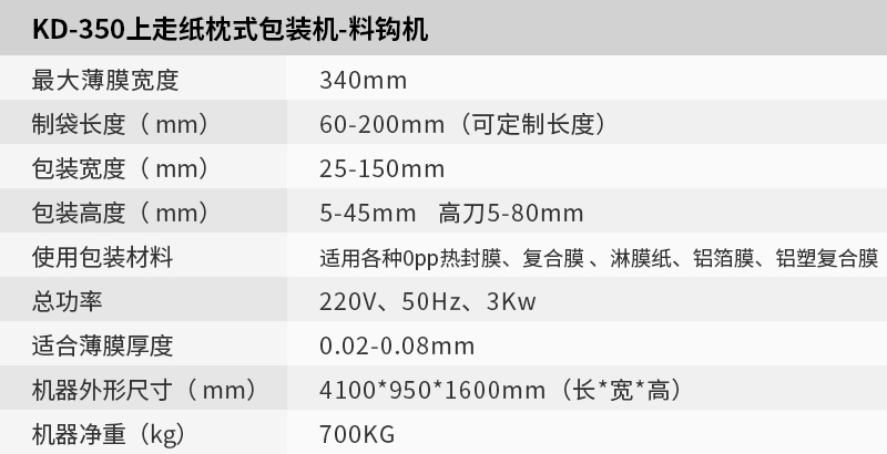 KD-350上走紙枕式包裝機(jī)-料鉤機(jī)