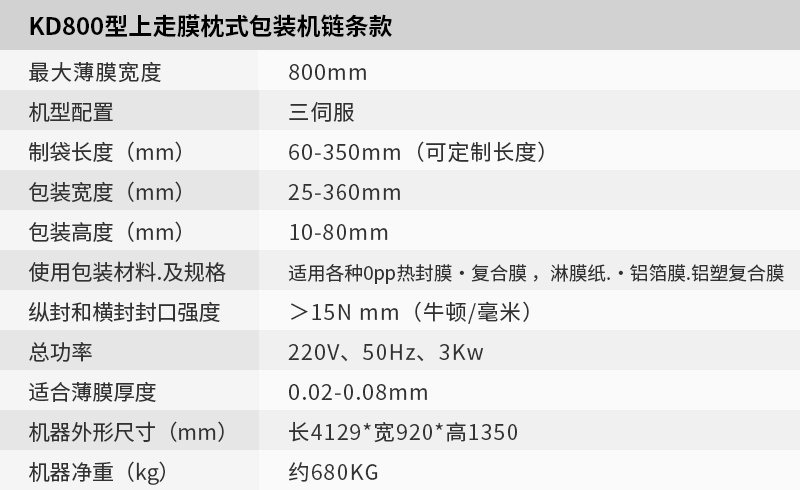 KD-800上走膜枕式包裝機(jī)鏈條款